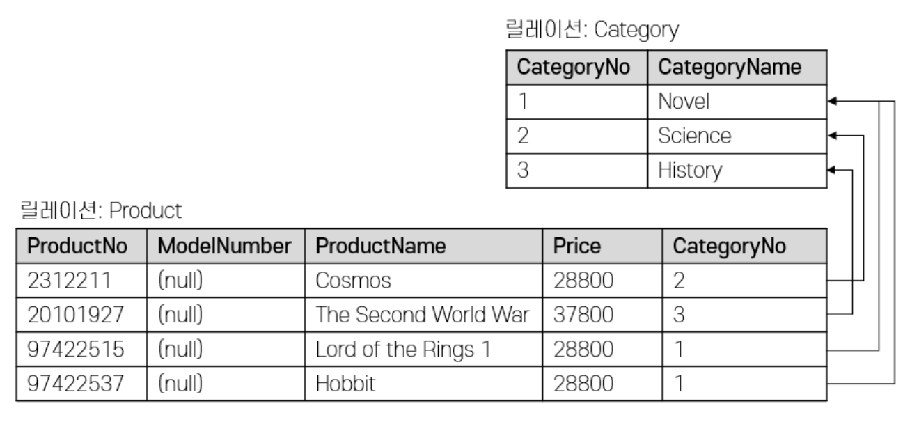 Productํ ์ด๋ธ์๋ ์ฐธ์กฐ ๋ฌด๊ฒฐ์ฑ์ ์ํ ์ธ๋ ํค ์ ์ฝ์กฐ๊ฑด์ด ์ ์ฉ๋์ด์๊ณ , Productํ ์ด๋ธ์ CategoryNo ํ๋๋ Categoryํ ์ด๋ธ์ CategoryNo ํ๋๋ฅผ ์ฐธ์กฐํ๊ณ ์๋ค. ๋ง์ฝ Categoryํ ์ด๋ธ์ CategoryNo์ด 2์ธ ํฌํ์ ์ญ์ ํ๊ฒ ๋๋ฉด Productํ ์ด๋ธ์ CategoryNo๊ฐ 2์ธ ํฌํ์ ๋ฌด๊ฒฐ์ฑ์ด ์ง์ผ์ง์ง ์๊ฒ ๋๋ค.